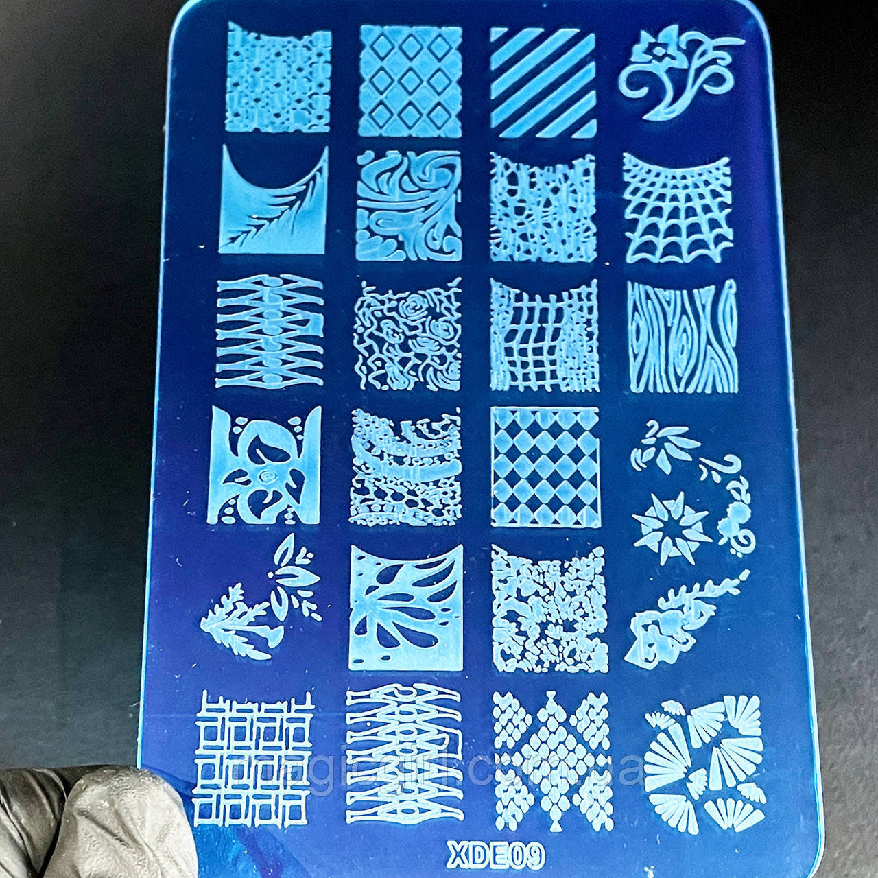 Акрилова пластина досить міцна, гладка та легка. Нанесені малюнки високоточні, з ідеальним опрацюванням навіть найдрібніших деталей візерунка. Малюнки можна комбінувати, наносити їх різними кольорами лаків, додавати стрази, перли, бульйонки та будь-які інші декоративні елементи.